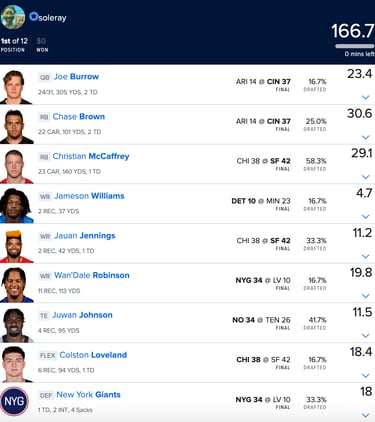 4. Gabe (gbmejia95) 142.4 vs. Lavern (lavernslusher) 117.9